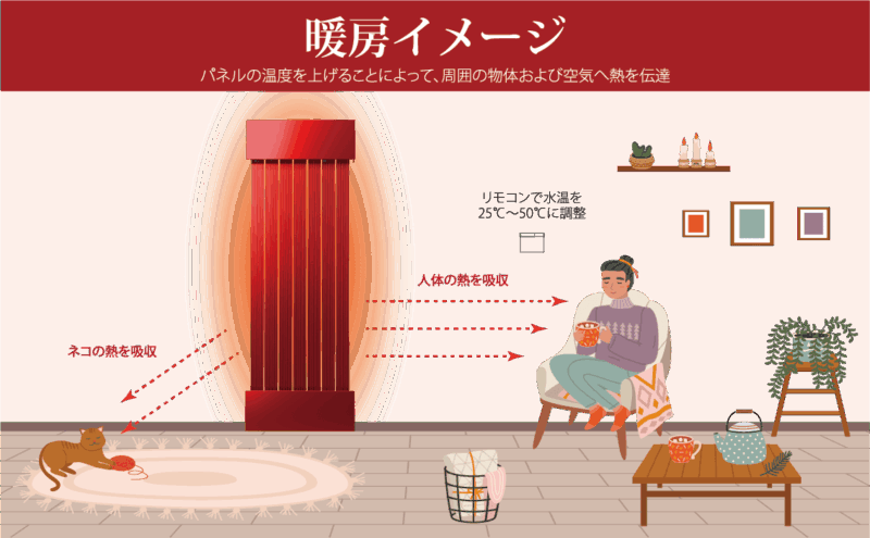 じんわりと熱(冷)を伝える仕組みのため、